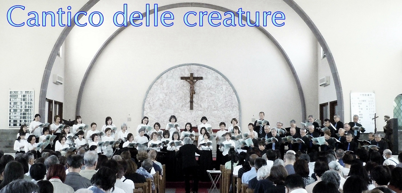 またデンマークの詩人ヨルゲンセンという人の書いた「アシジの聖フランシスコ」(平凡社)という書物も読んでみた。その中で大きな収穫があったのは、僕が今年の4月に作った「創造主への賛歌Cantico delle Creature」が、聖フランシスコの最晩年、すなわち聖痕が与えられ具合が悪くなった後に書かれた詩であること。しかも最初は大地を褒める詩の個所まで書かれ、その後、自分の病が進行するにつれて、病と艱難を耐える人たちへの想いを綴ったくだりを書き、さらに自分の死期を悟った時には、次のような詩を加えたという。
