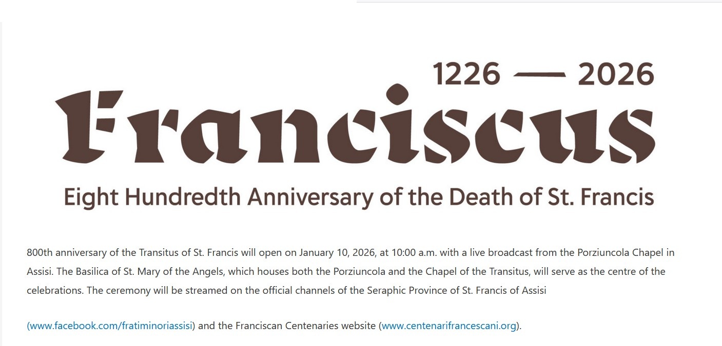教皇レオ14世が宣言した聖フランシスコ特別記念日は、2026年1月10日から2027年1月10日まで、聖フランシスコ帰天800周年を記念して開催されます。